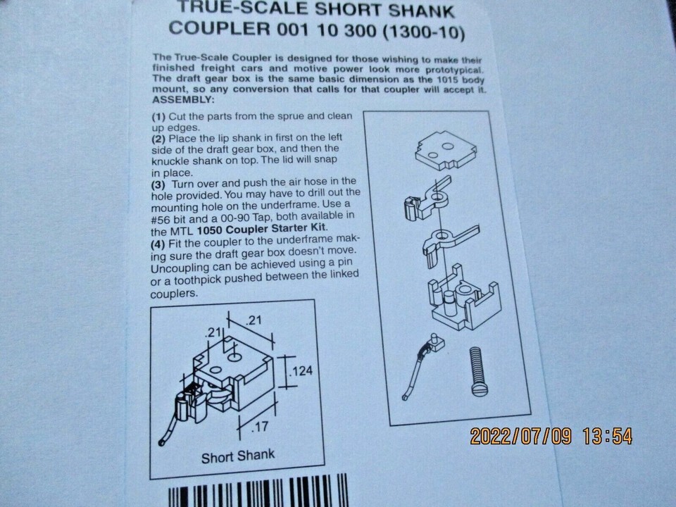Micro-Trains True-Scale Short Shank Coupler Unassembled. 10 Pair. N- Scale.