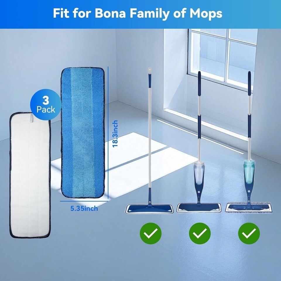 Microfiber Mop Pads 3-Pack, 18-Inch Reusable Washable Pads Compatible with Bona Mops, Cleaning Covers for Hardwood Hard Floors