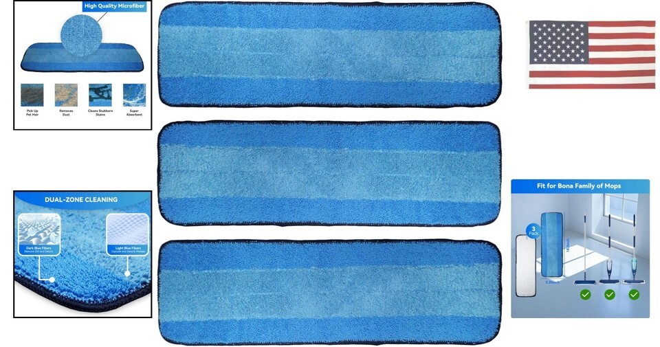 - Microfiber Mop Pads 3-Pack, 18-Inch Reusable Washable Pads Compatible with Bo...