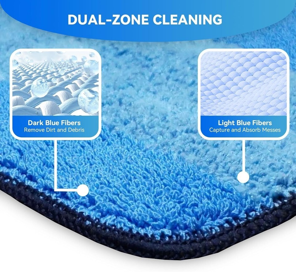 Dual Zone Cleaning: dark blue fibers efficiently remove dirt and debris, while light blue fibers capture and absorb water and small particles.