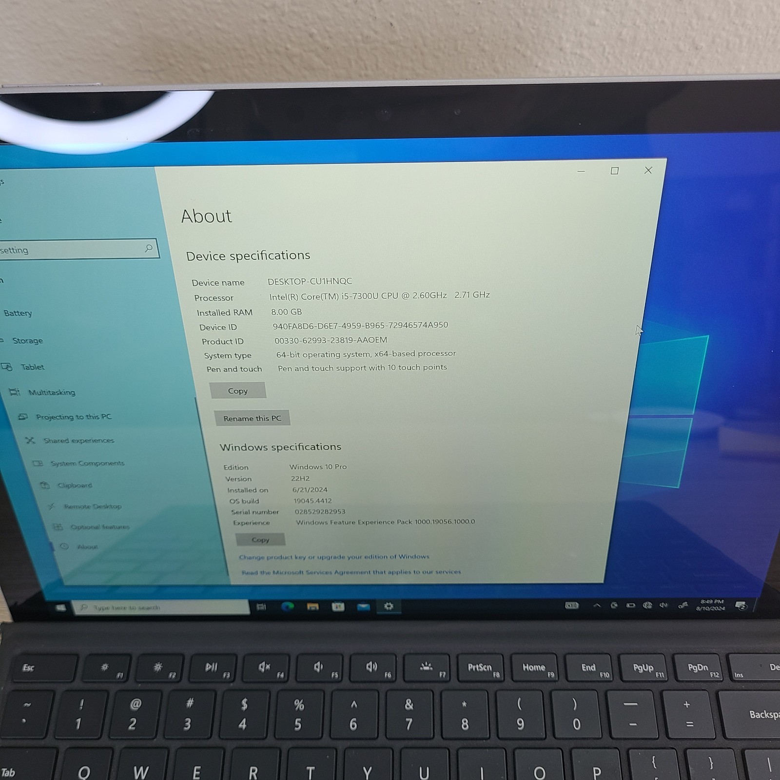 - Microsoft Surface Pro 1807 w/ i5-7300U 2.60Ghz 8GB 256G READ (Small White Spots)
