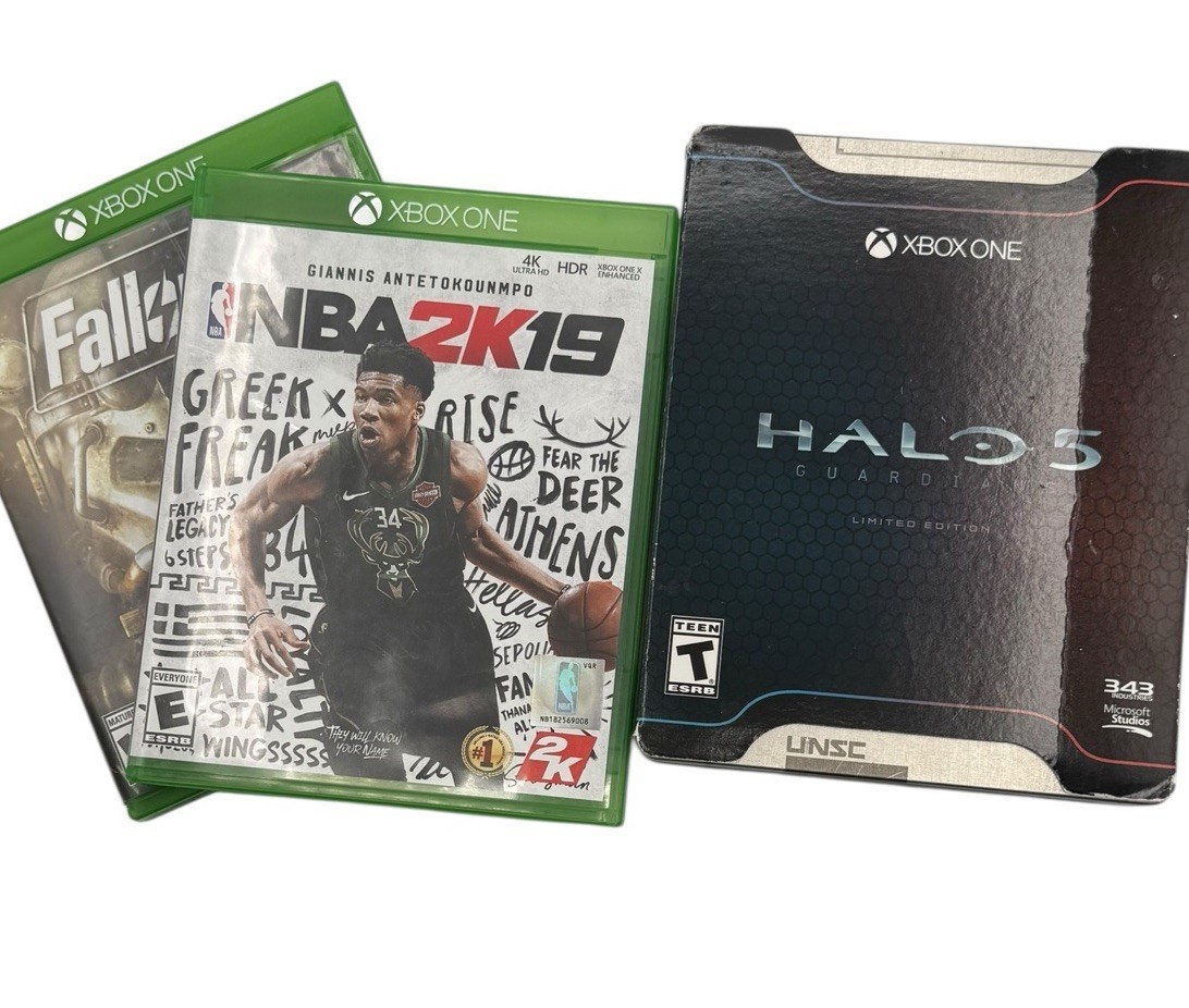 - Microsoft Xbox One Lot of 3 Video Games NBA2K19 Fallout 4 Halo 5