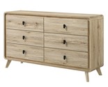 - Mid-Century Beige Wood-Inspired 6-Drawer Dresser Storage Furniture