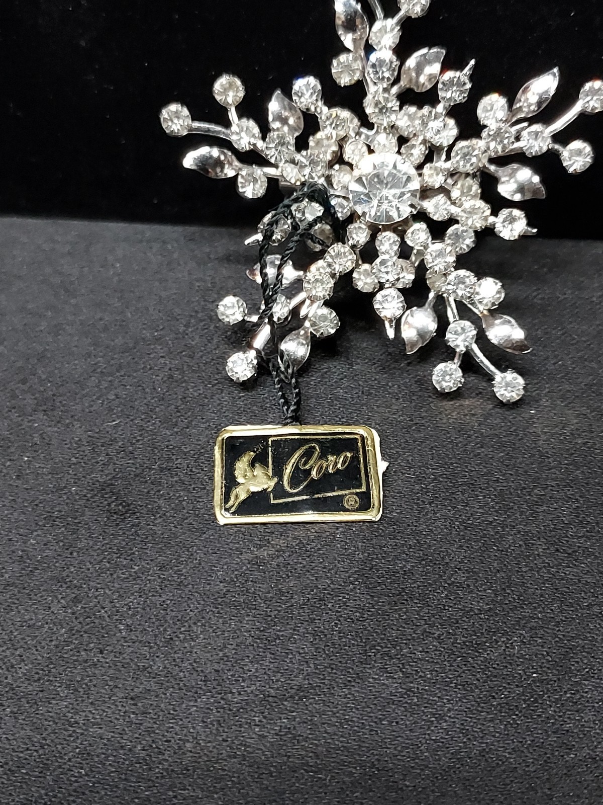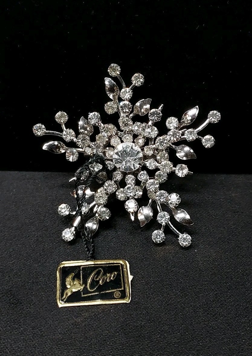 - Mid Century Coro Rhinestone Star Snowflake Pin Brooch UNUSED Original Tag