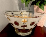 Mid Century Glass Bowl Frosted Gold Fleur de Lis Barware Decor MCM