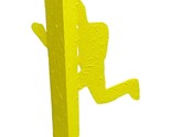 The sculpture is made of assembled plywood painted with heavy textured yellow paint.