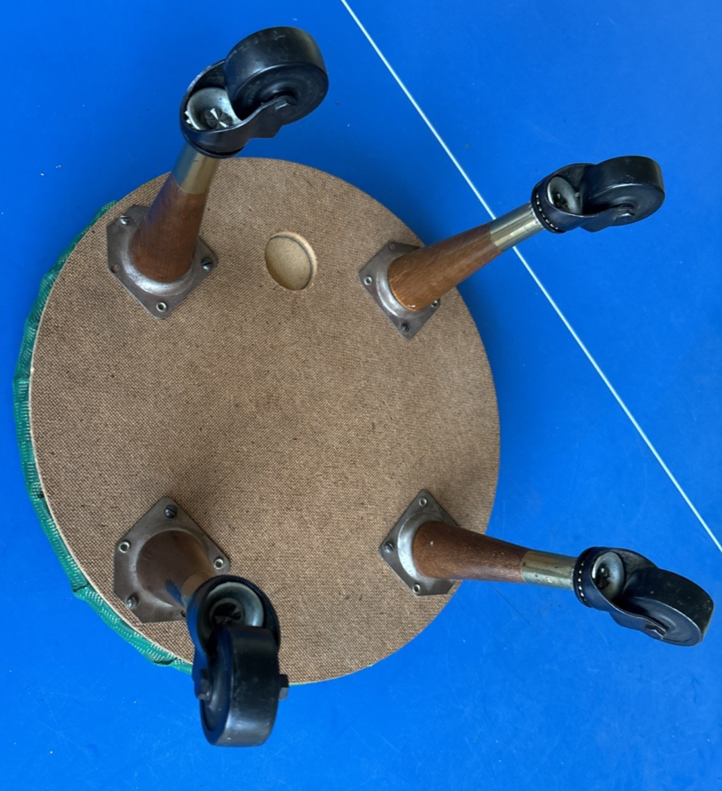 The Mid-Century MODERN Small 3 Legged STOOL is a stylish and unique piece of furniture, perfect for any room in your home. Made of wood with a green color, this round stool has a seat height of 9 inches and is fully assembled, requiring no additional parts. It is a vanity stool/bench with a modern style, manufactured post-1950 in the United States. With its compact size of 14 inches in length and width, this stool is a versatile and functional addition to your space.