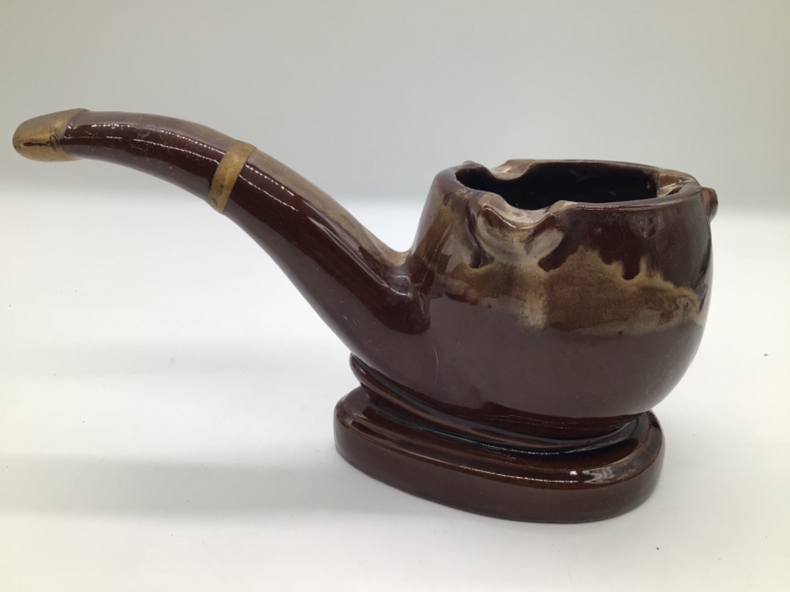 Add a quirky mid-century flair to your collection with this vintage Napcoware (Napco) Japan pipe-shaped ceramic ashtray. The iconic drip-glaze brown finish and classic ?N? Napcoware sticker confirm its authentic 1960s origin. Perfect as a unique desk accent, pipe ashtray, or small planter for succulents.