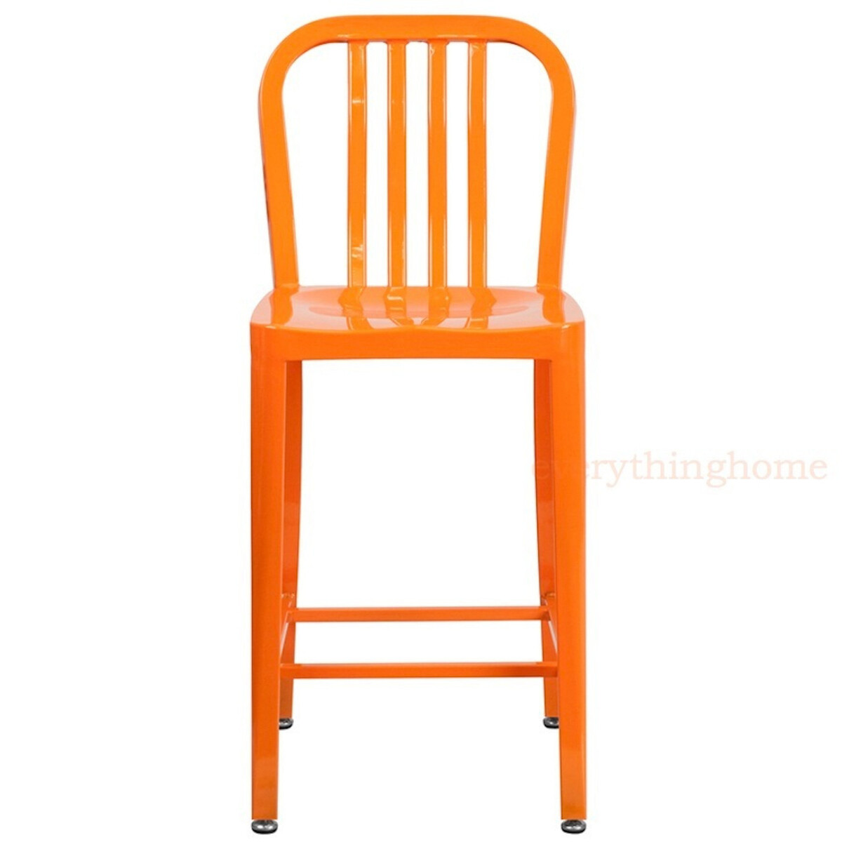 - Mid-Century Orange 'Navy Style Counter Stool Cafe Patio Chair Outdoor Commercial