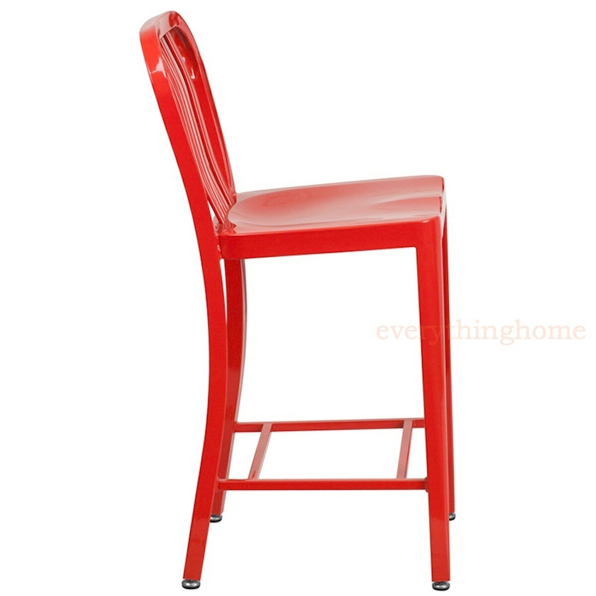 - Mid-Century Red 'Navy' Style Counter Stool Cafe Patio Chair Outdoor Commercial