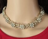 ?Style/Features: This exquisite 1950s choker necklace is a true mid-century statement piece. This heirloom quality vintage crystal special occasion chokers like these are highly collectible. Wide scrollwork in gold tone plate with sparkling clear rhinestone flower rosettes between. The links are fully flexible and can be worn 12-16 inches with the extension chain and hook so will be a perfect fit on most everyone. From prom to a wedding this will elevate your gown with mid-century modern sparkle. Even with the metal on metal tarnish in spots this is an heirloom quality collar and provide you with decades of wear.