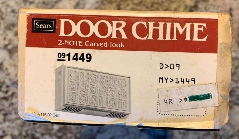 - Mid Century Sears Door Chime Cover Cream, Gold in Box Instructions NOS [e-11]