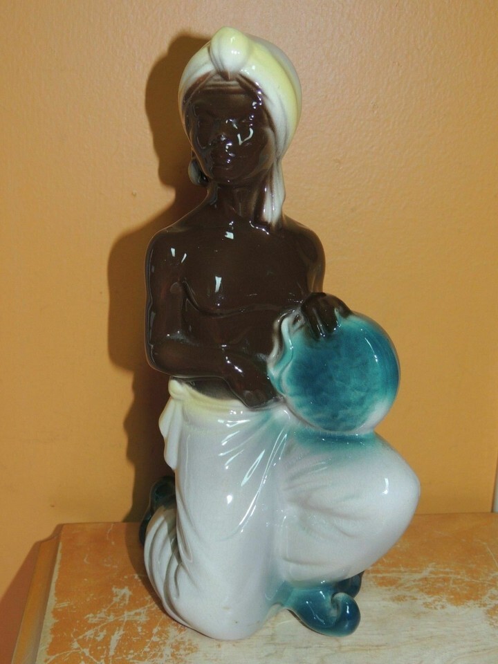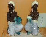 - Mid-century pair Royal Copley figurines 8.5" Blackamoor figures Drummer Indian
