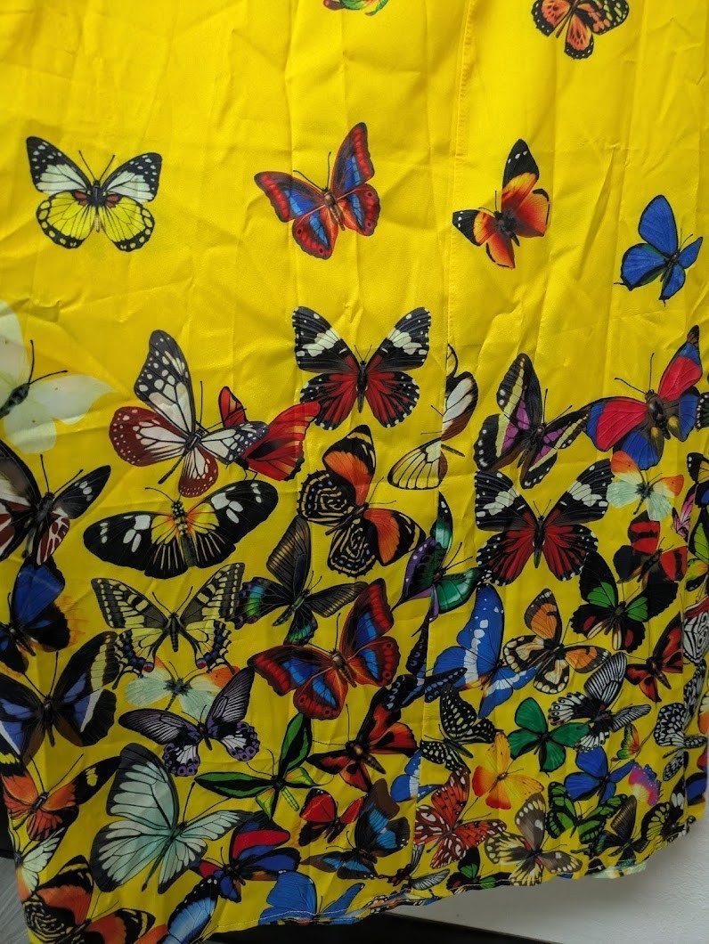 Midi Dress Womens Butterfly Print Design Sleeveless V-Neck Yellow and Red XXL