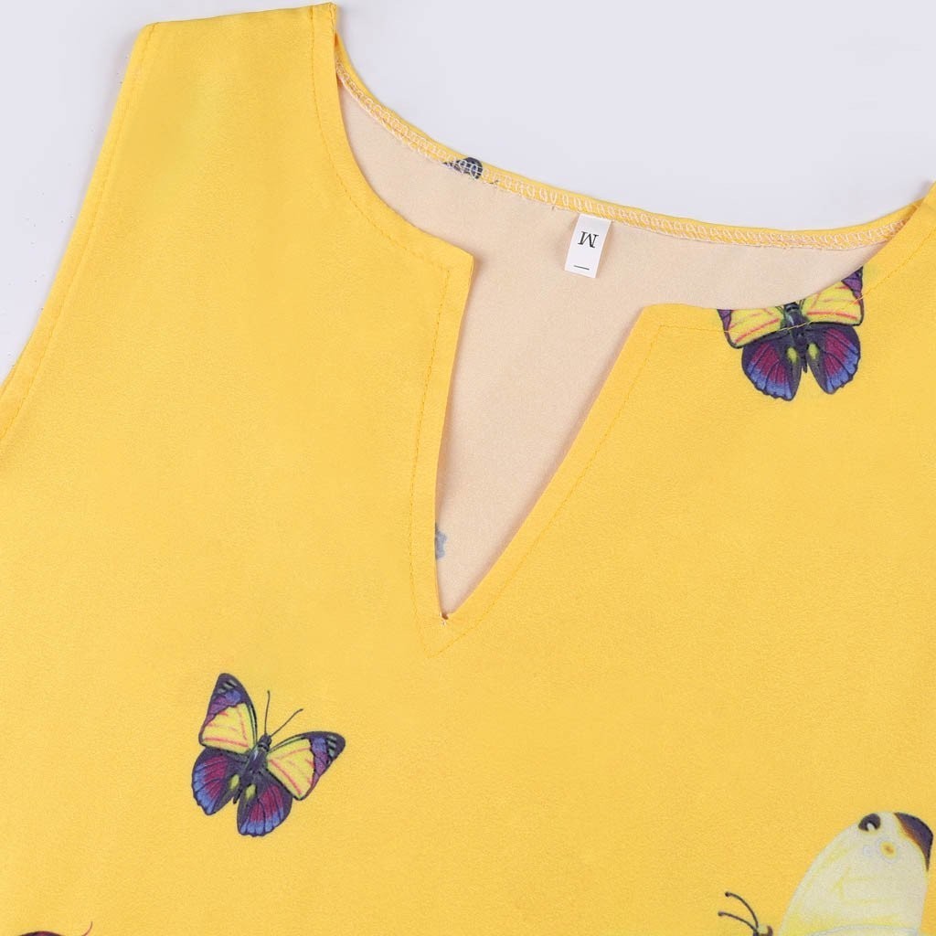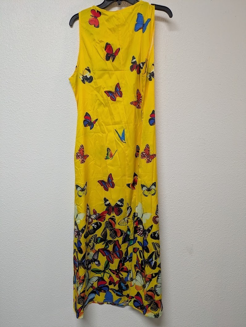 - Midi Dress Womens Butterfly Print Design Sleeveless V-Neck Yellow and Red XXL