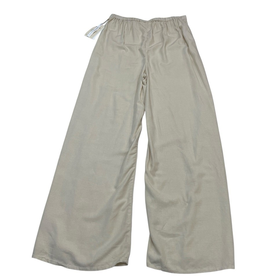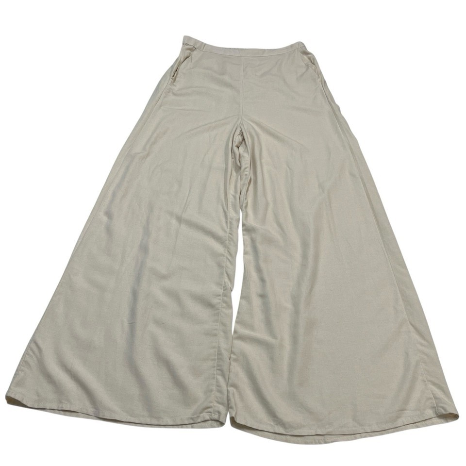 Midnight Sky Pants Womens L Ivory Linen Blend Wide Leg Pull On Beachy Coastal