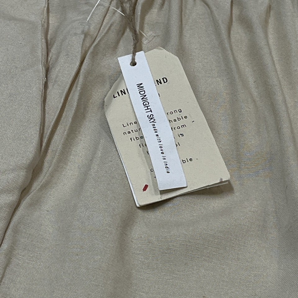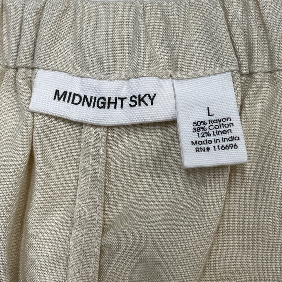 - Midnight Sky Pants Womens L Ivory Linen Blend Wide Leg Pull On Beachy Coastal