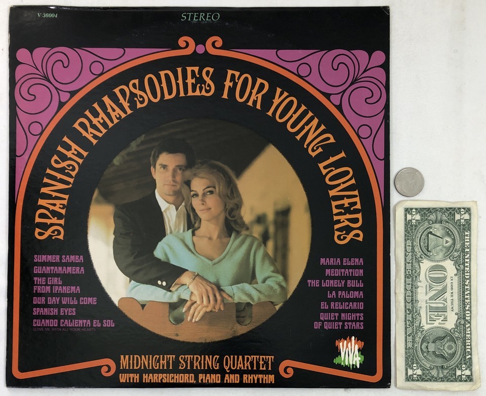 Midnight String Quartet Spanish Rhapsodies For Young Lovers Record. Great deal on a fantastic looking old record. Cleaned and inspected before sale. Perfect for any audio enthusiast looking for a great hobby. Includes record and original sleeve.