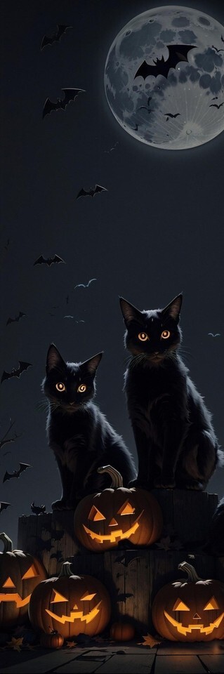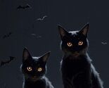 When the moon is high and the pumpkins glow, two black cats guard the secrets only the night knows.