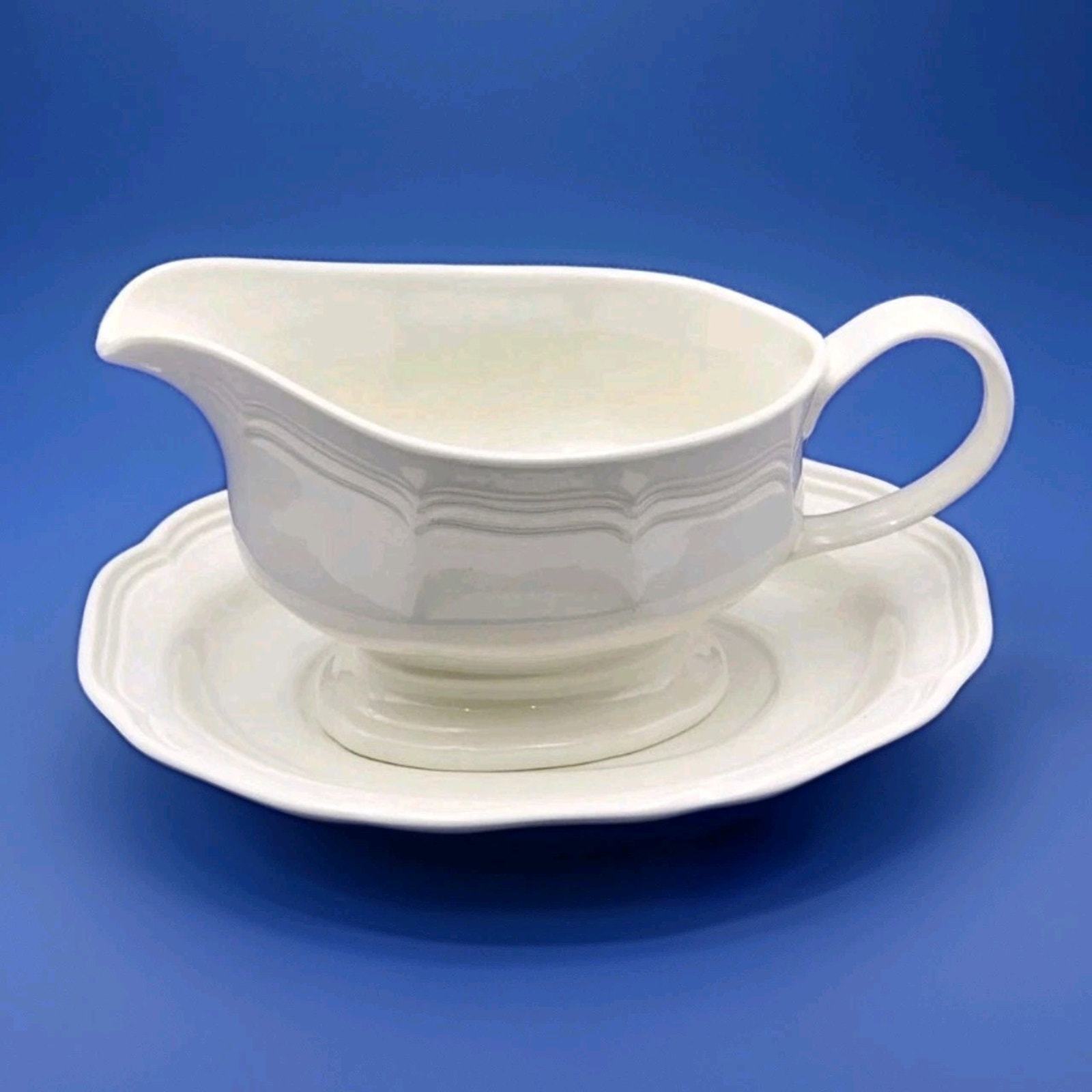- Mikasa French Countryside White Gravy Boat and Underplate F 9000 SHIPS FAST