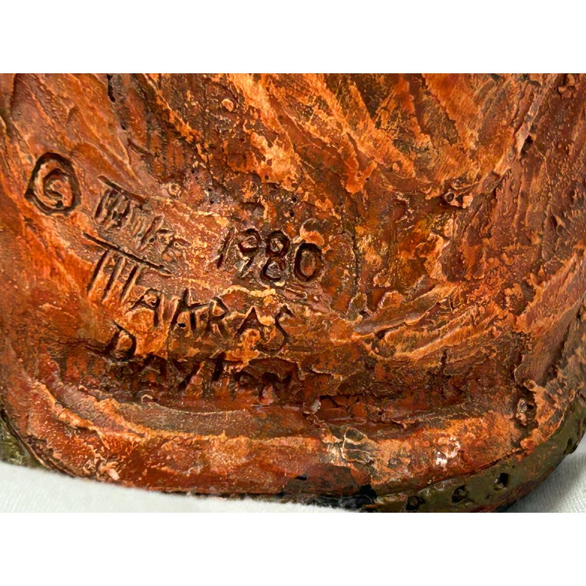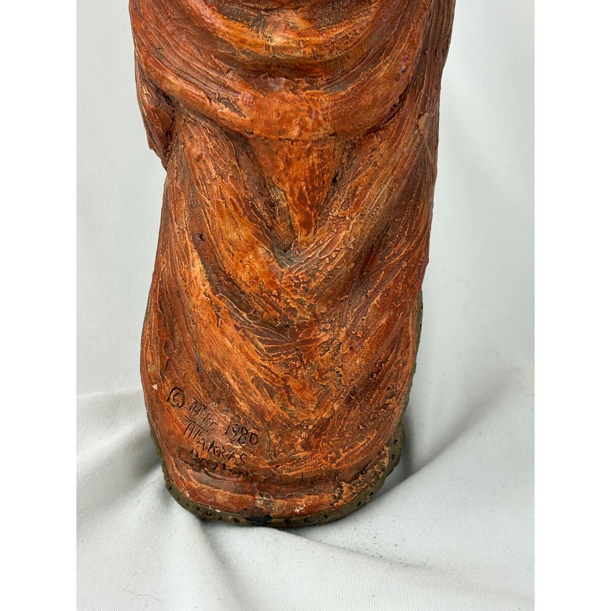 Hand painted with warm tones and deep shadowing, the piece shows excellent artistic detail. Light vintage wear is present, with minor surface rubbing typical of older hand-painted resin figures. The base is clearly inscribed ? MIKE 1980 MAKRAS,? confirming its origin.
