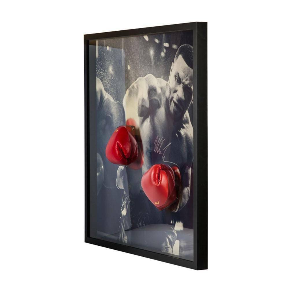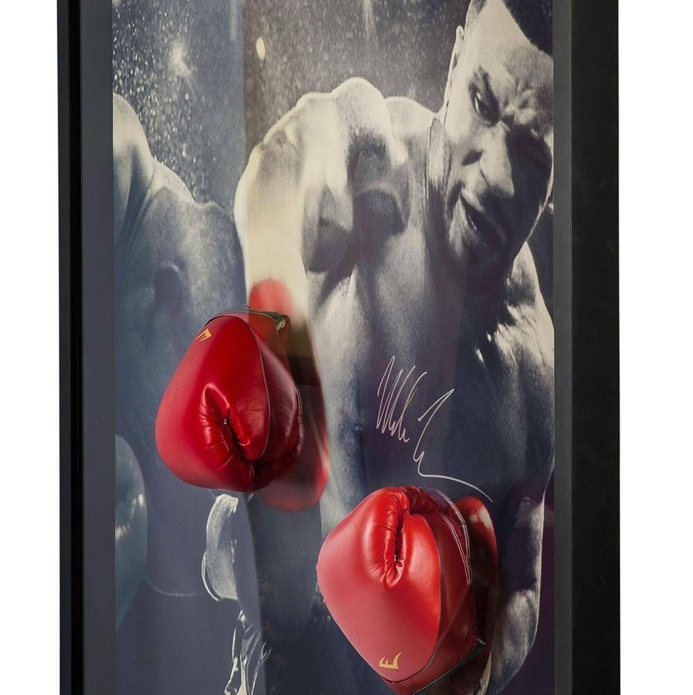 Mike Tyson Signed Break Through Shadowbox Frame!! Wow, this is quite the piece as Tyson signed the actual photo right on his chest as you can see in the photos but the boxing gloves are actually coming through the plexi glass to give this piece a 3D view!! This piece is limited edition out of only 20 made and is sold out everywhere!! This is a must-have for any Tyson fan as this may quite possibly be one of the coolest Tyson items out there!!