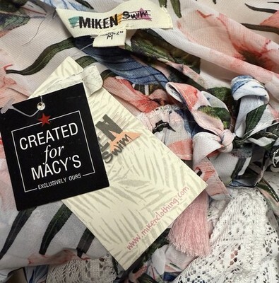 Miken Swimsuit Cover Up Juniors Lace Trim Caftan White Floral Size Medium NEW