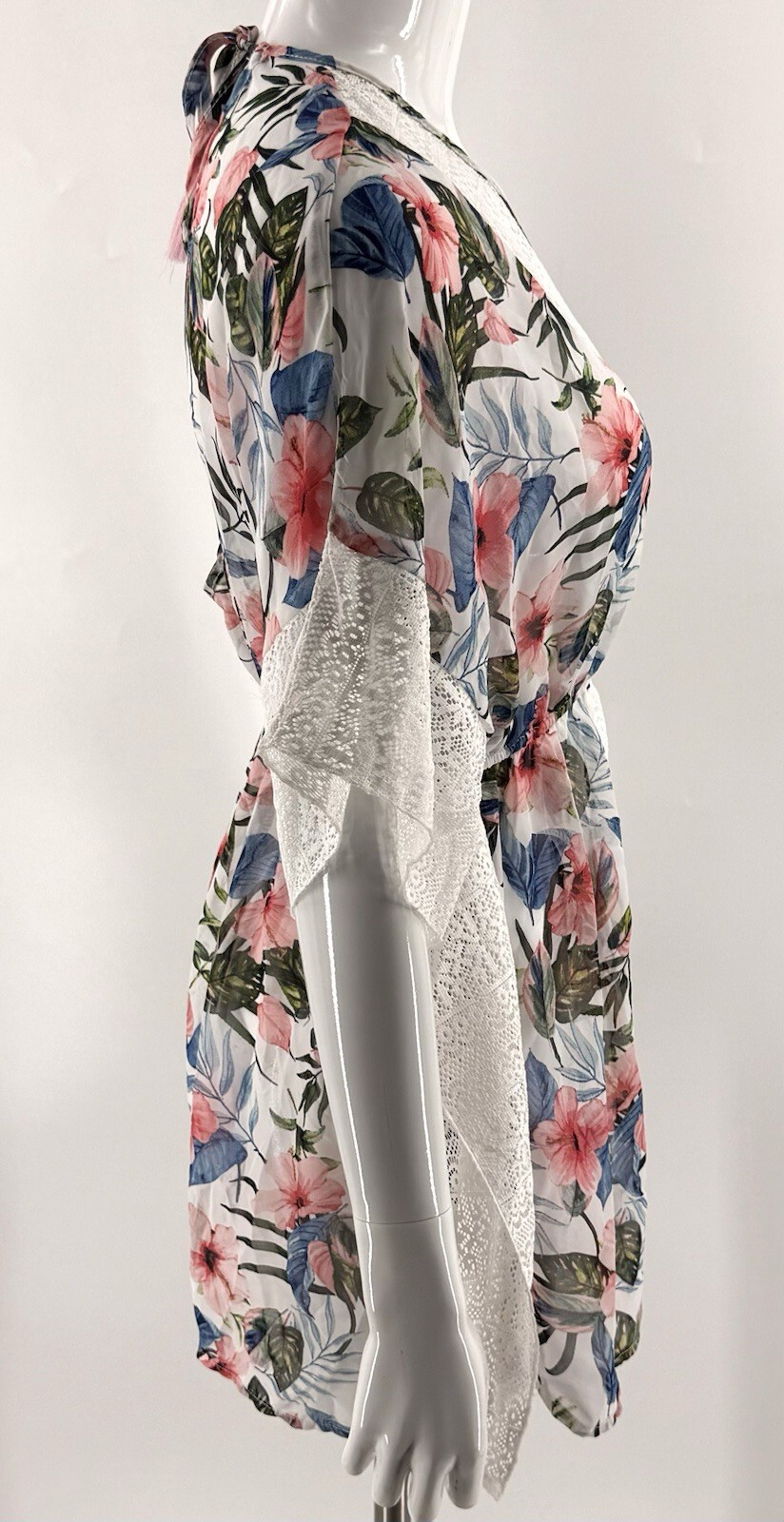 - Miken Swimsuit Cover Up Juniors Lace Trim Caftan White Floral Size Medium NEW