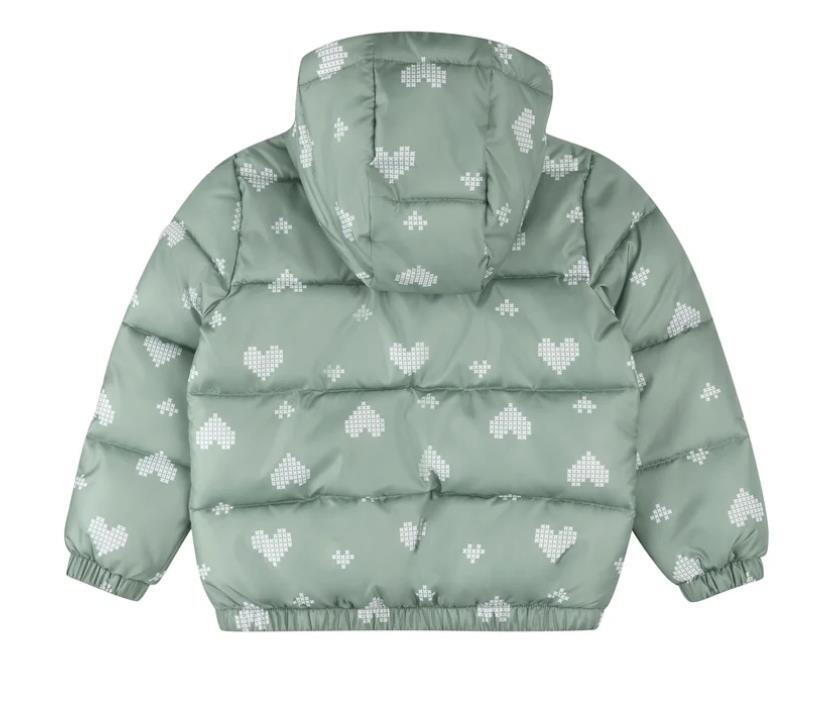 - Miles the Label Boys Girls Jacket Green Hearts Hood Pockets Water Repellent