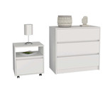The Munyoch Nightstand is equipped with casters for easy mobility and positioning.