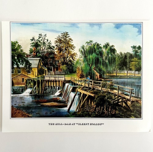 - Mill Dam At Sleepy Hollow 1955 Currier & Ives Color Plate Antique Print DWEE37