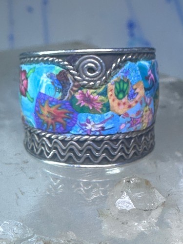 Millefiori ring cigar band rope design glass sterling silver size 5.5 women girl