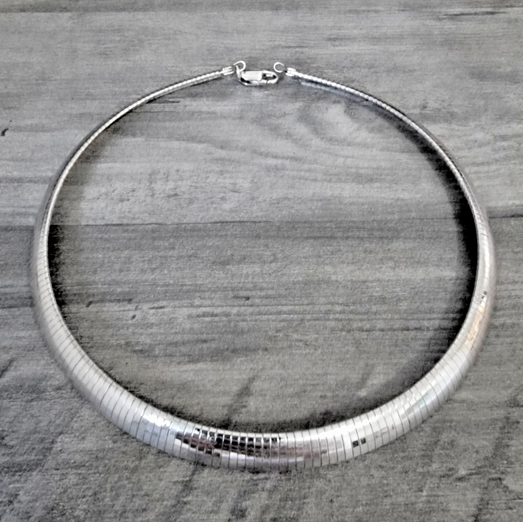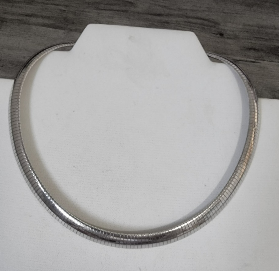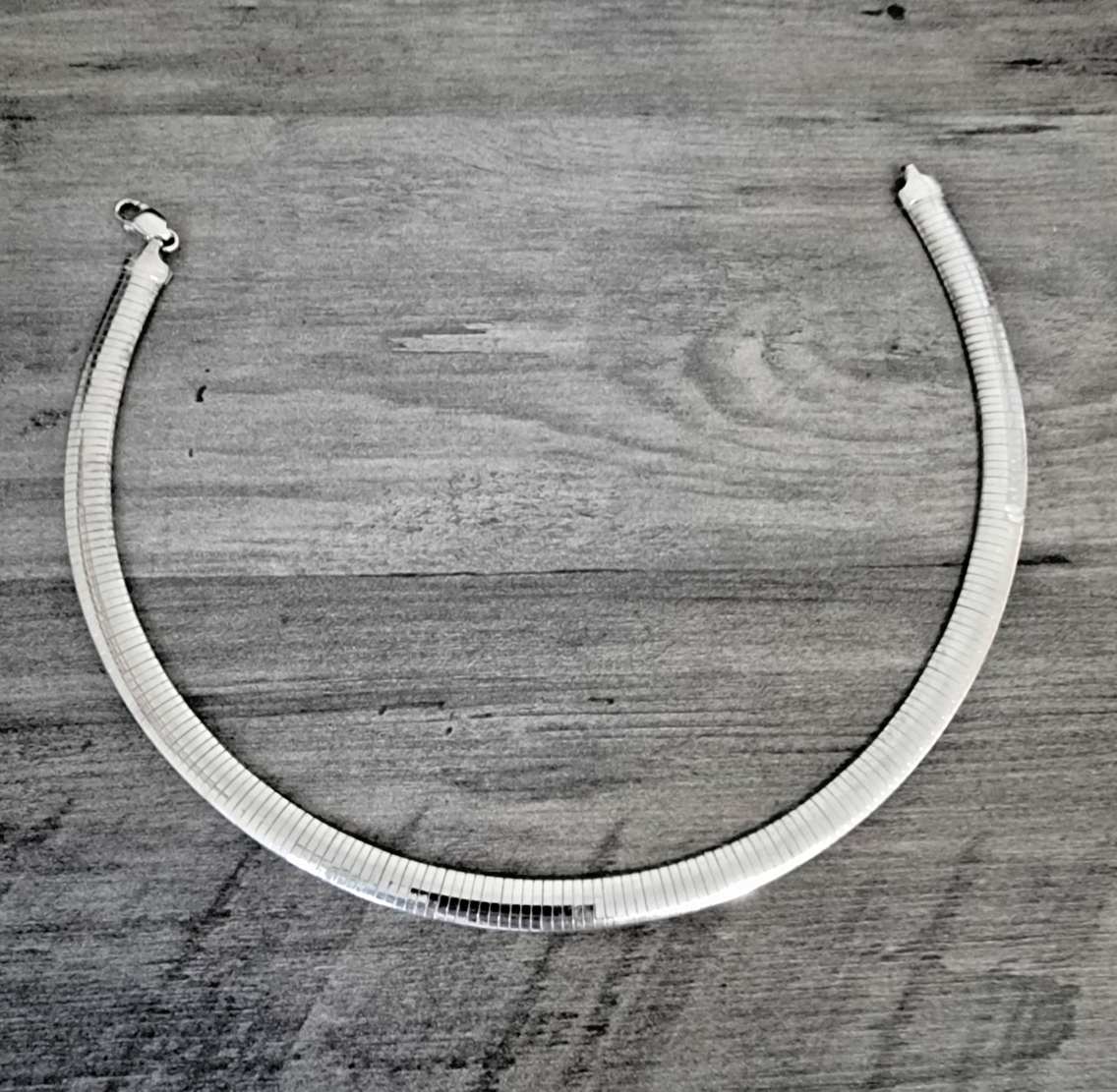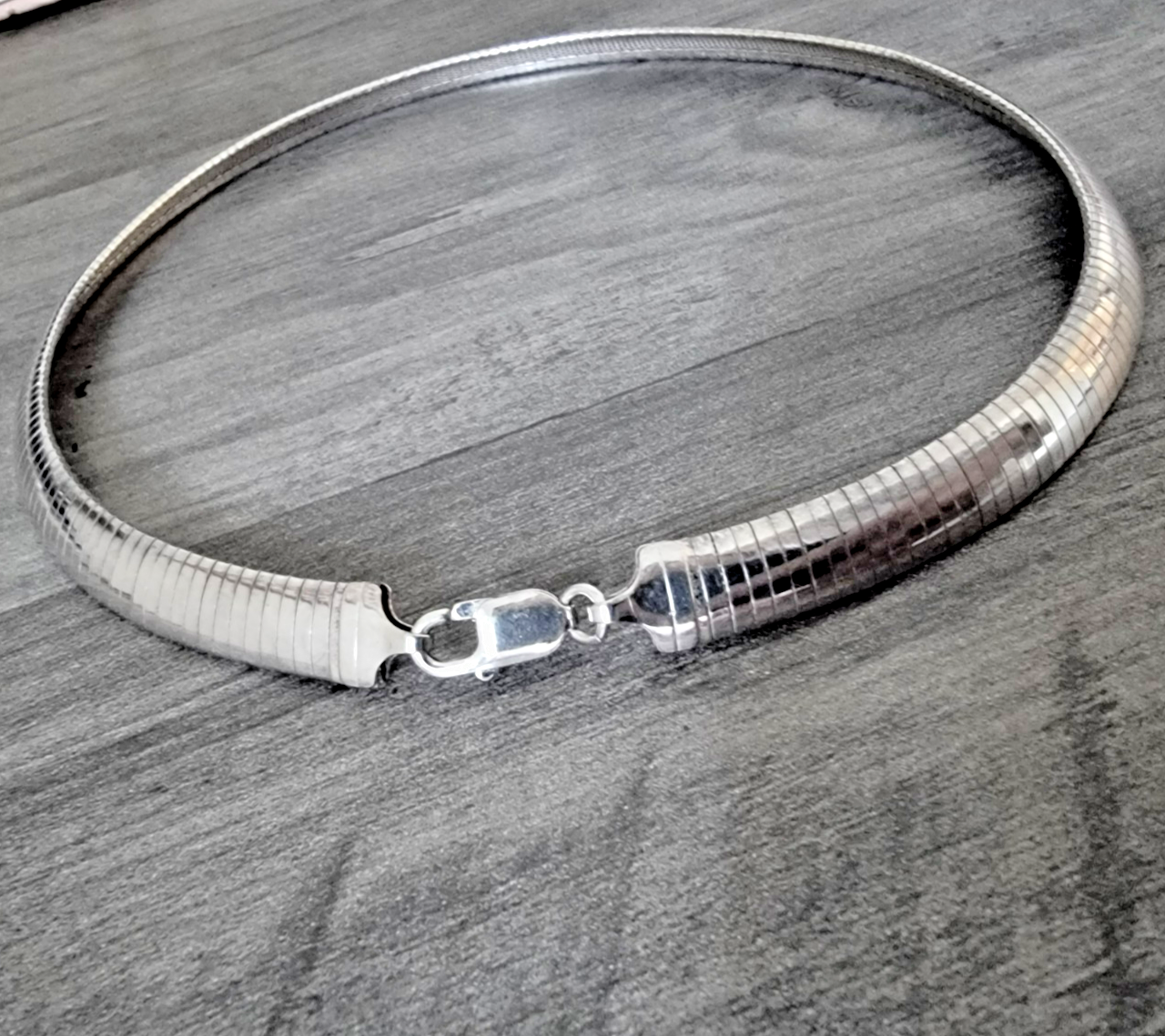 - MILOR ITALIAN 925 STERLING SILVER 10 mm OMEGA FLAT COLLAR NECKLACE 45.4 g 16"