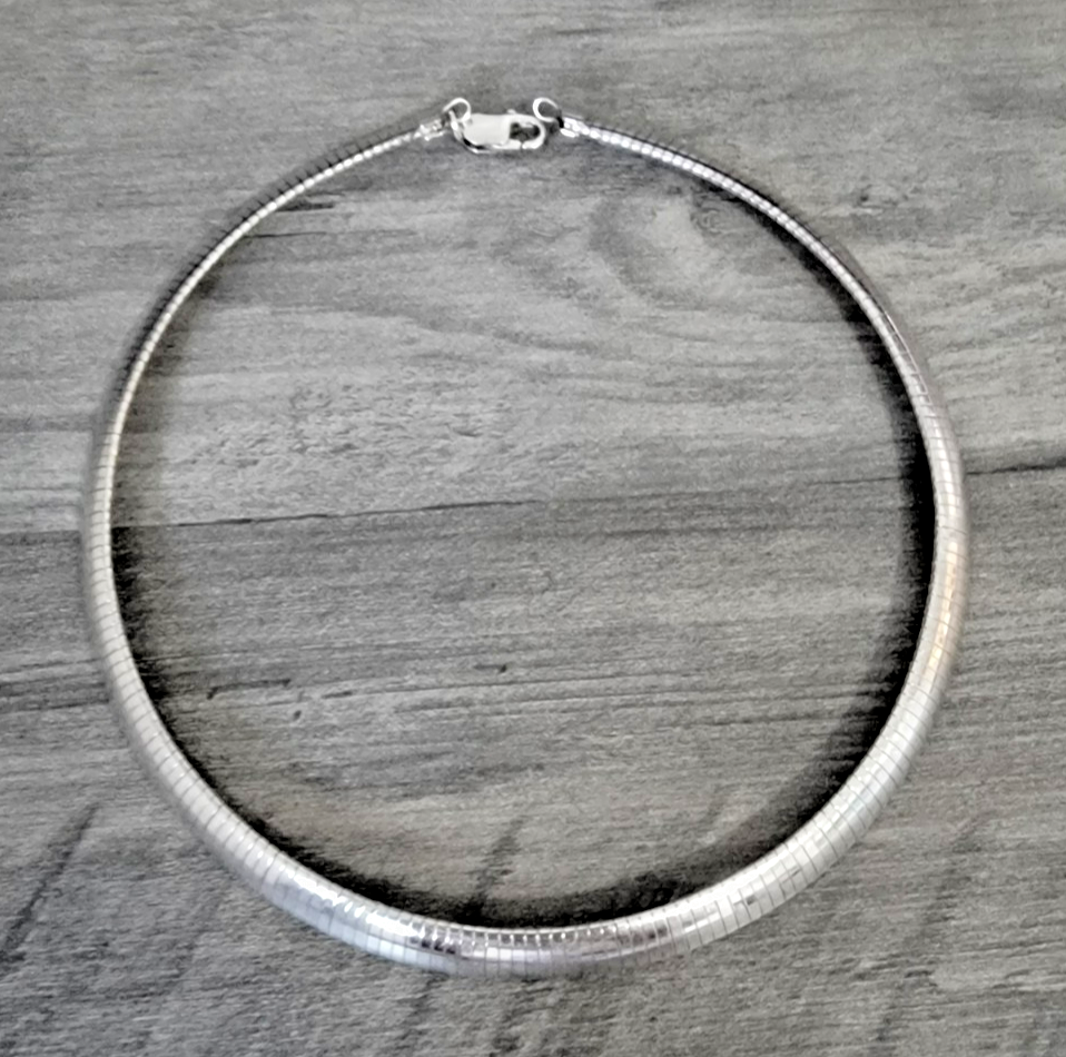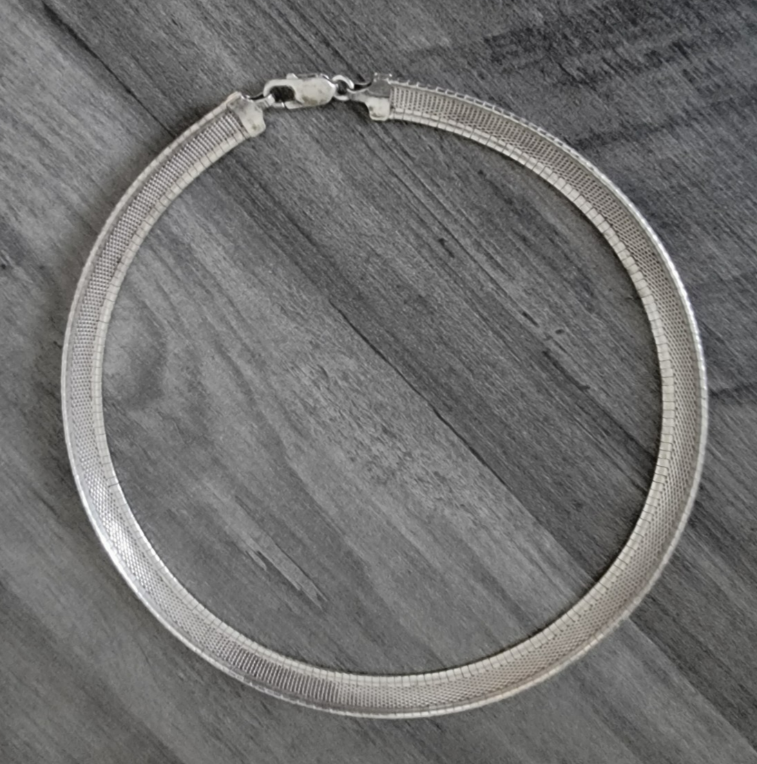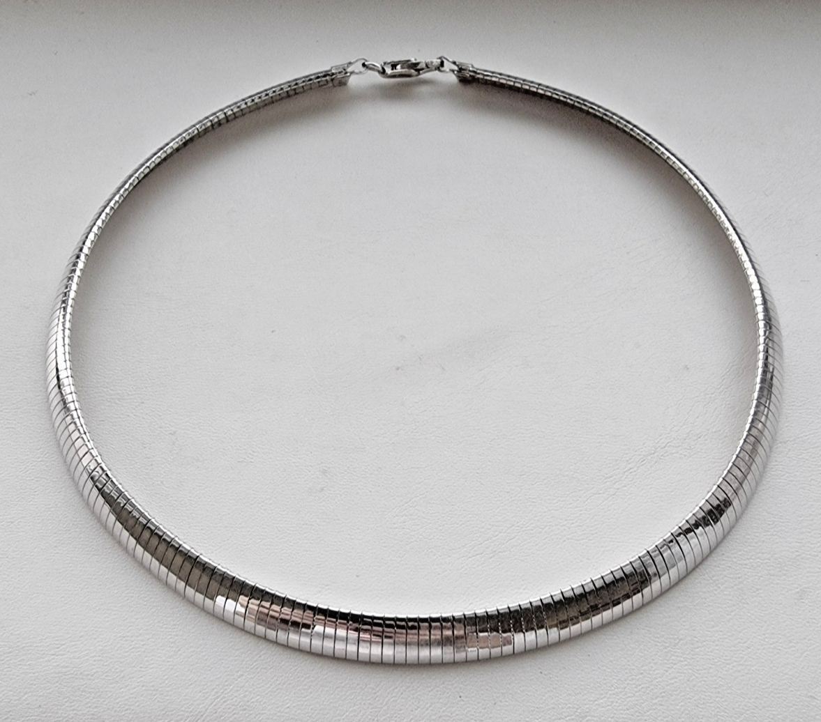 - MILOR ITALIAN 925 STERLING SILVER 10 mm OMEGA FLAT COLLAR NECKLACE 45.4 g 16"