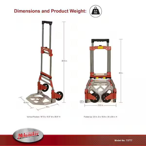- Milwaukee Convertible Fold-Up Steel Hand Truck 150lbs Capacity + 60" Bungee Cord
