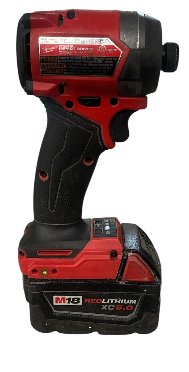 Category: Cordless hand toolsType: Impact DriverBrand: MilwaukeeModel number: 2953-20Model name: Milwaukee 2853-20 M18 FUEL 1/4" Hex Impact DrSize: 1/4"Color: RedPower source: BatteryBattery Included: yesCase included: noCharger Included: noVoltage: 18vNumber of pieces: 2Drive Size: 1/4Condition:Used