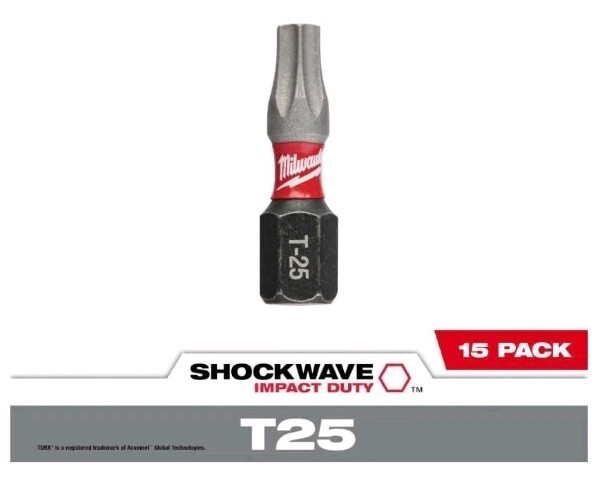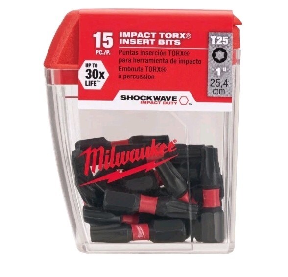 - Milwaukee SHOCKWAVE 1 in. Impact T25 Insert Bits (15 Pack)
