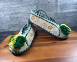 Minas Traditional Greek Woollen 9.5M Slippers Women Green Beige Wool Pom Pom