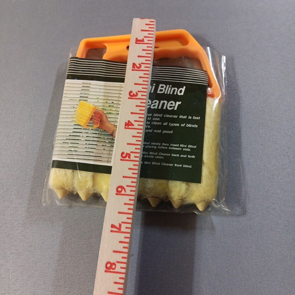 The Mini Blind Cleaner is a handheld cleaning tool designed specifically for mini blinds and shutters. Its small size makes it easy to reach and clean hard-to-reach areas. The orange color adds a pop of brightness to your cleaning routine. Made from durable materials, this blind cleaner features a plastic handle for easy grip and a multifunctional design for all types of blinds and shutters. Easy to use and washable, this handy tool is perfect for adults looking to keep their windows clean and spot-free. New in the package.
