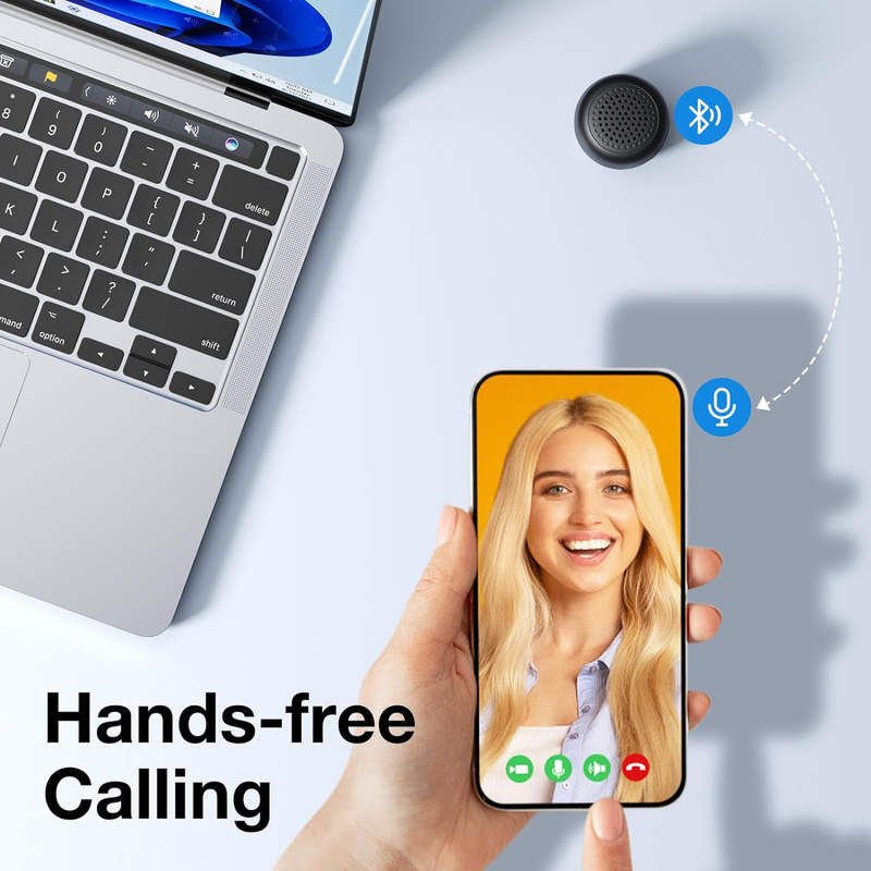The LEICEX Bluetooth speaker measures just 1.4 inches in diameter and 1 inches tall, making it the perfect size to slip into a tote bag, backpack, cup holder, or tuck away on a desk or table corner. The passive radiator gives this mini speaker a excellent sound despite its small size.