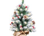 Pre-decorated Desktop Mini Christmas Tree with Lights: This mini Christmas tree 2ft is adorned with 12 strands of beautiful berries and pinecones. 80 flocking snow frost branches make this small tree fuller and more attractive. The flocking snow frost branches won't shed, so you don't have to worry about making a mess on your desktop or floor