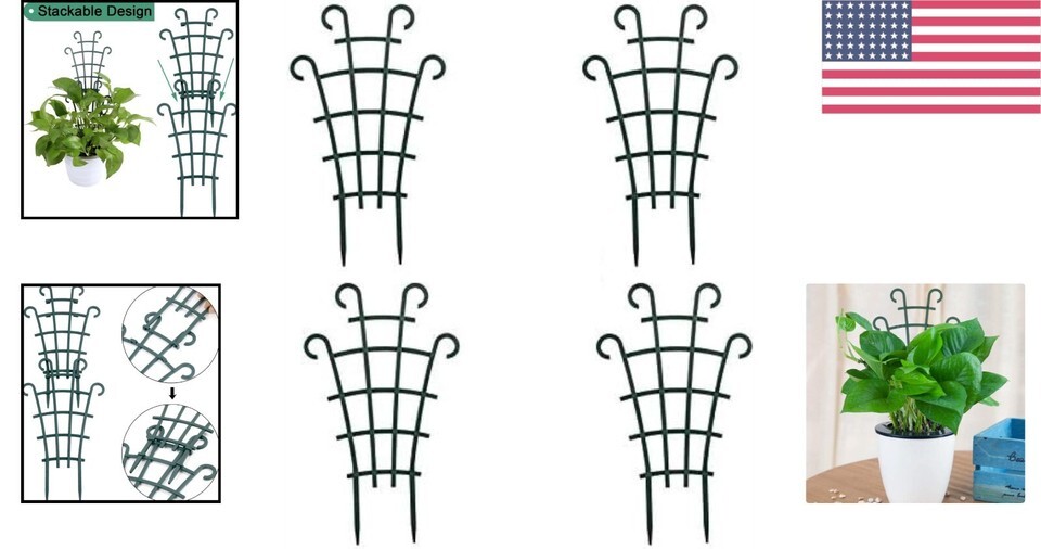 - Mini Dark Green Plant Support Trellis - Perfect for Indoor & Outdoor Use, 4 Pack