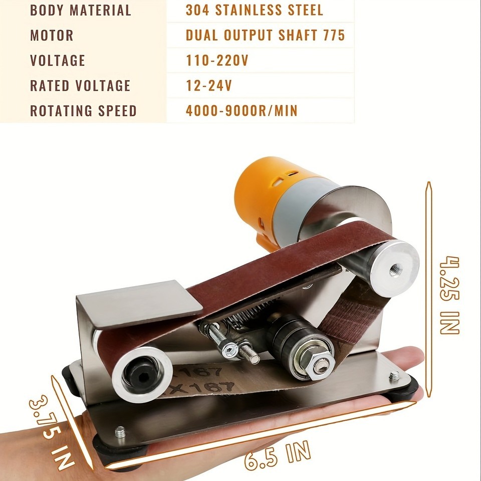 Perfect for knife sharpening, woodworking, jewelry sanding, and metal grinding ? this powerful mini belt sander is a must-have for any DIY enthusiast or professional craftsman. Compact, efficient, and versatile, it delivers smooth precision with minimal vibration.