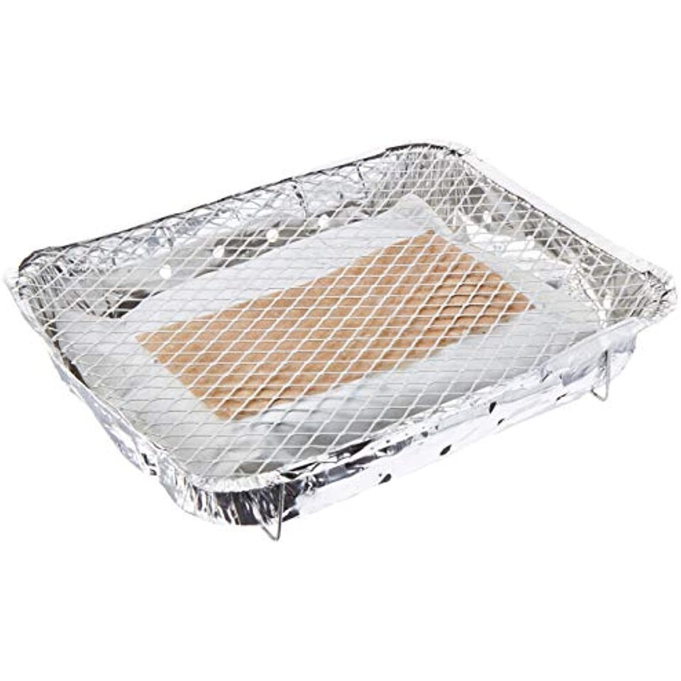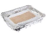 Heavy- duty aluminum pan with easy-to-light charcoal briquettes. Aluminum diamond-shaped mesh grid and 4 corner wire legs to prop pan above surface. Pan vent holes provided improve combustion. 101 Sq. In. cooking surface. Color: Silver. 12.25 In. W. x 2.25 In. H. x 9.75 In. D.