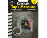 Easily take measurements on the go with this Mini Tape Measure Keychain featuring a small impact resistant tape measure with 3' of tape and a metal chain and key ring. Includes standard and metric graduations. Tape measure measures approximately 1.75" x 1.75".