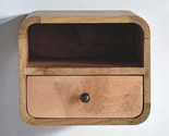 - Mini Wall-Mounted Curved Oak Nightstand w/ Drawer, Light Brown