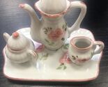 - Miniture Tea Set 1 Tea Kettle With Lid 1 Sugar Bowl With Lid 1 Creamer Bowl