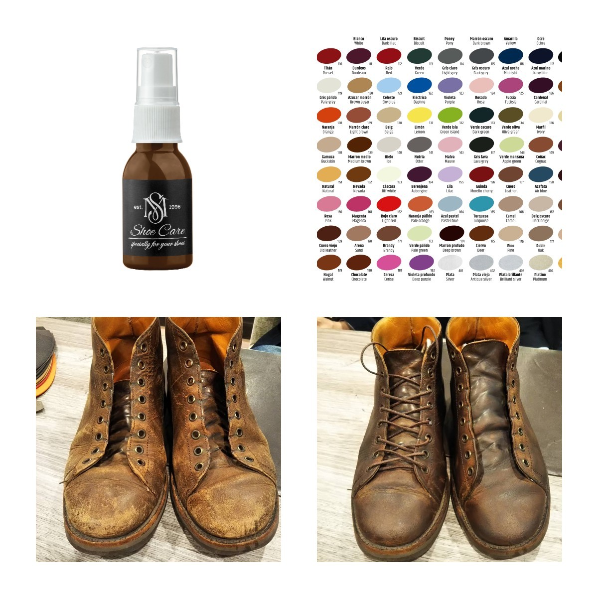 Shake the bottle vigorously and apply a small amount of the product to the shoe cloth.