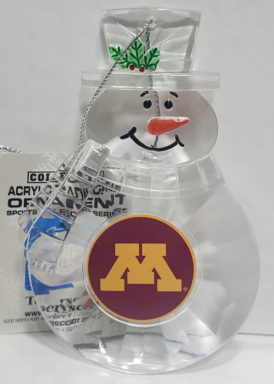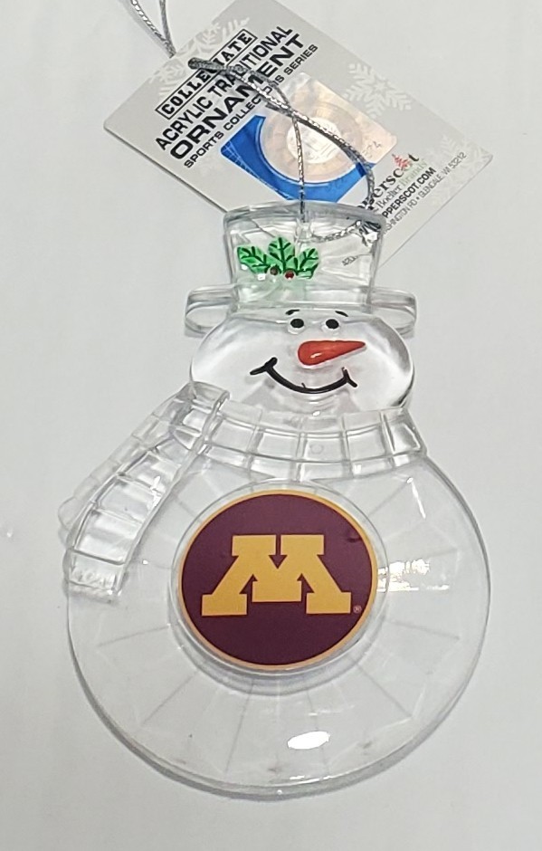 Officially Licensed Minnesota Golden Gophers Acrylic Snowman Ornament.