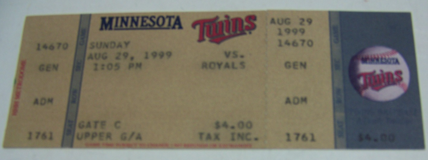- Minnesota Twins vs KC ROYALS 1999 unused Ticket Stub, FREE SHIPPING US ONLY!!